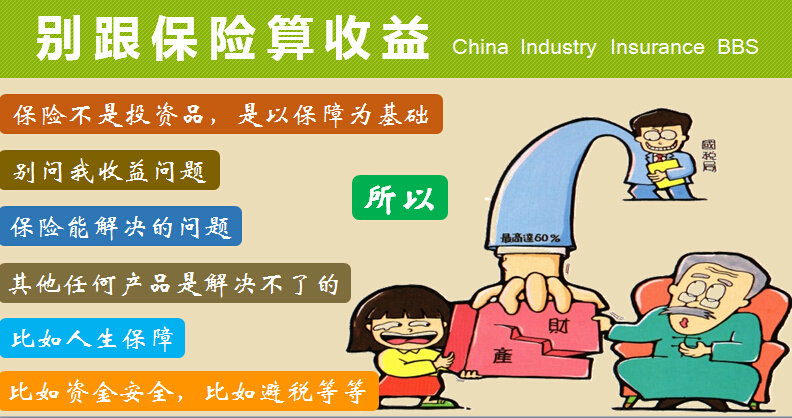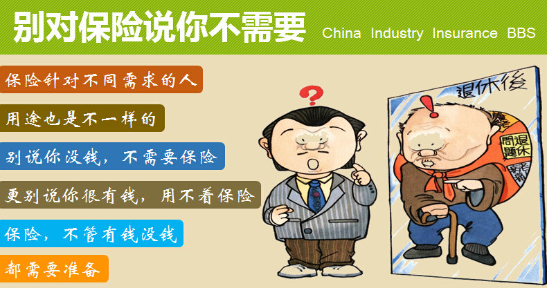 保险就是一把伞,风雨无阻路平坦; 保险就是备用胎,轮胎一换照样开; 保险就是救生圈,救起落水到岸边; 保险就是医疗费,大病小病安心睡; 保险就是教育费,孩子读书不怕贵; 保险就是养老钱,安度晚年不缺钱; 保险就是理财金,坐享红利最省心; 保险不用很多钱,保你安全没风险; 保险平时当存钱,万一有事不缺钱, ●保险针对不同需求的人,用途也是不一样的。所以,不要说你没钱,不需要保险,或者你很有钱,不需要保险。保险不管有钱没钱,都需要! ●市场上保险产品很多,归根到底就五大类,按顺序购买。意外险、健康险,寿险,养老险,子女教育险、最后是投资理财。不要买错了顺序! ●保险不是投资品,是以保障为基础,所以别问我收益问题。保险能解决的问题,其他任何产品是解决不了的,比如人生保障,比如资金安全,比如避税等等。 ●家庭买保险一定先保经济支柱,再保孩子。很多人只想给孩子买,觉得大人没必要,其实大人真有事发生了,谁给孩子交保费?一家人以后的生活谁来承担? ●对于高净值人群,保险最大的作用是:资产安全、不被查封、不被罚没、不被离婚分割、不被孩子任意挥霍、不被国家税收。 ●市场没有一款产品是无敌的,没有一款产品能解决你所有问题,要想保障全面,必须要把产品组合,组合产品才能解决你所有问题。 有人以为掌握了开启幸福人生的钥匙,但没想到命运却开玩笑般地换了把锁。保险并不能保证命运不会换掉锁,但可以保证不管命运如何换锁,都不会把你关在门外。在你拥有幸福人生的同时,请千万不要忘记随时保持危机意识,为自己准备足够的保障,遇到再难打开的锁,都能有强大的力量破门而入! |