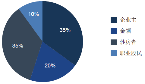 岁过半; ►男性6 成; ►44% 硕士及以上或EMBA; ►财富最大来源于金融、股权投资; ►平均拥有3 辆车,4
